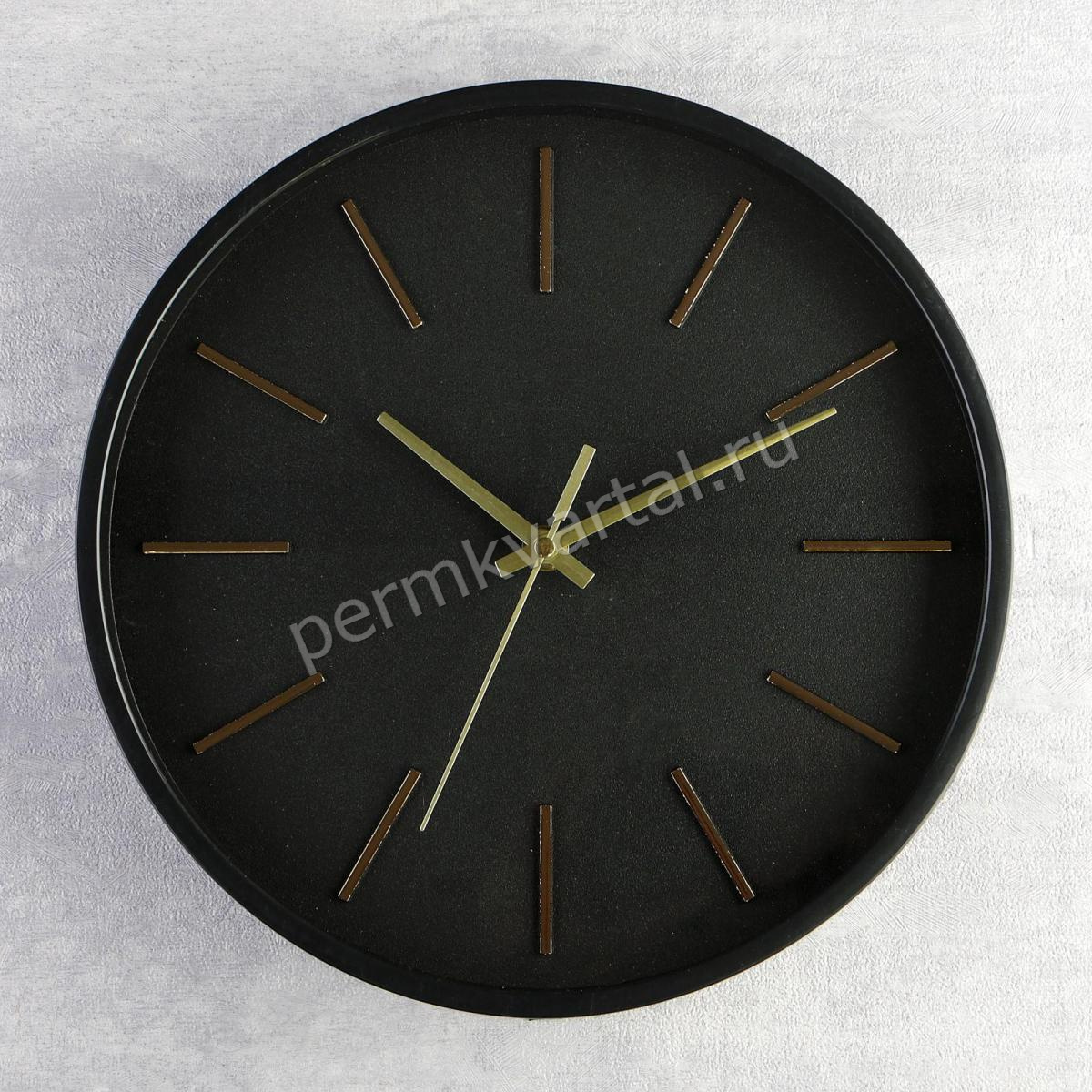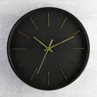 Часы настенные Классика черные, золотые риски, d=27.5см, (ДК)