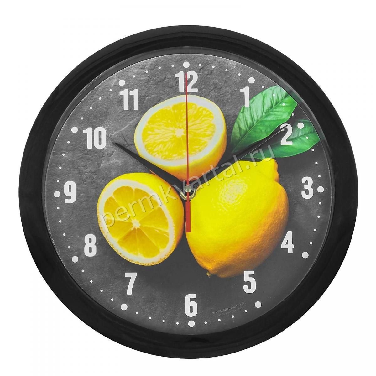 Часы настенные, серия: Кухня, Лимоны чёрный обод, 28х28см, (ДК)