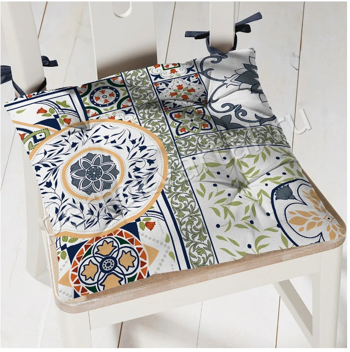 -----ОТК.Подушка на стул с тафтингом квадратная Азулежу Mia Cara, 40х40см, (ДК)
