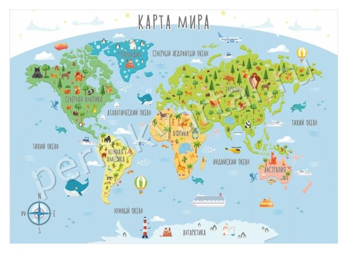 -----Фотообои бумажные Bellissimo, Карта мира, 2 листа, 1400х1000 мм, (ДК)