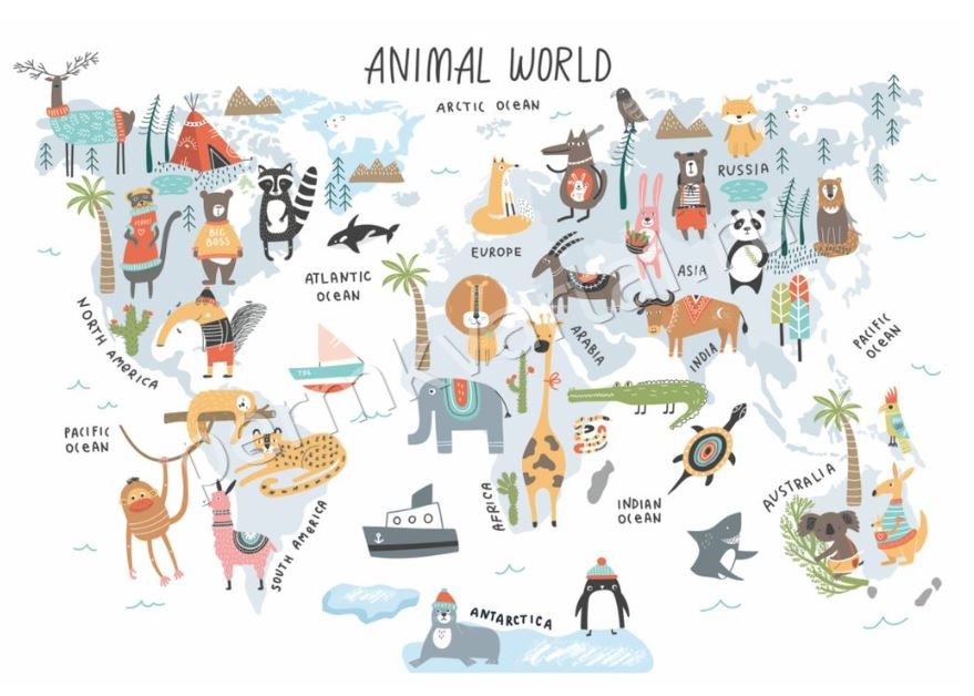 -----Фотообои бумажные Симфония Волшебная карта мира, 4 листа, 1400х2000 мм, (ДК)