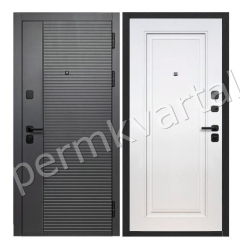 Дверь металлическая ТАЙГА 2МДФ 860L Сатин графит/Эмалит белый 2050*860*105мм, (ДК)