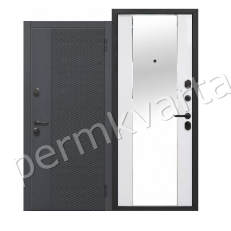 ----Дверь металлическая ФЛОРИДА 2МДФ 860L Эмалит белый с зеркалом 2050*860*90мм, (ДК)