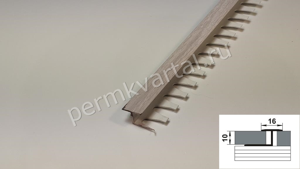 ЛУКА.Порожек стыкоперекрывающий гнущийся.Ясень белый, 2700х16х10мм, (ДК)