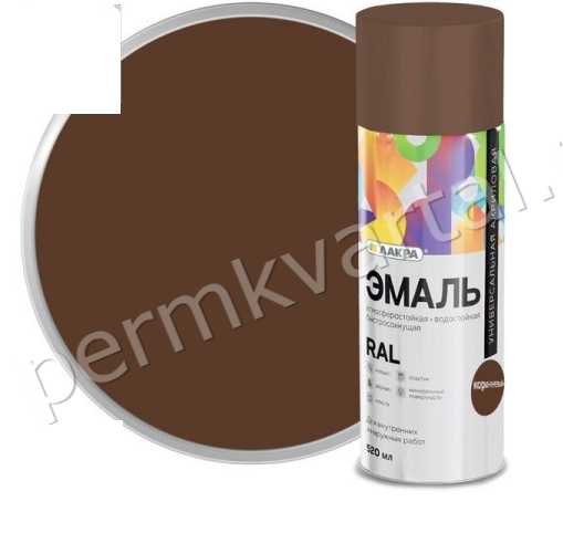 -----Эмаль аэрозоль ЛАКРА Color универсальная коричневая RAL 8011 520мл, (ДК)