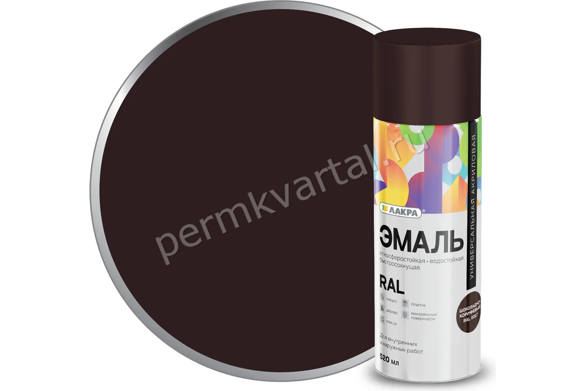Эмаль аэрозоль ЛАКРА Color универсальная шоколадно-коричневая RAL 8017 520мл, (ДК)