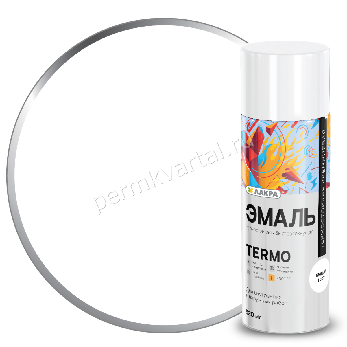 Эмаль аэрозоль ЛАКРА Termo термостойкая + 300 С белая 520мл, (ДК)