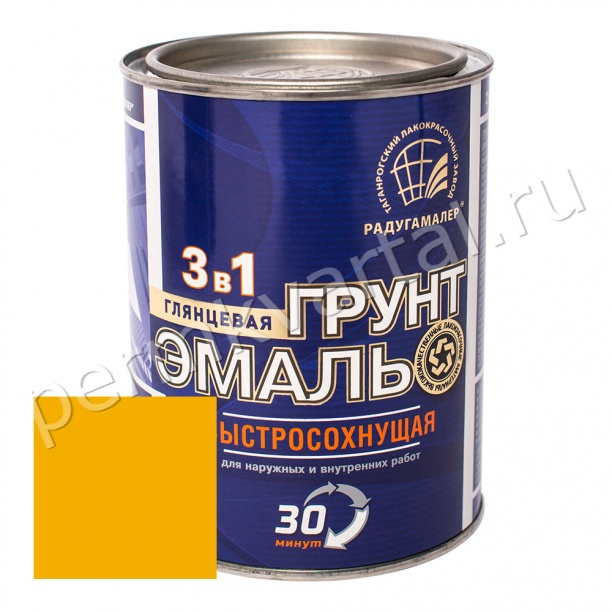 Эмаль по ржавчине 3в1 РАДУГАМАЛЕР желтая 0,9 кг, (ДК)