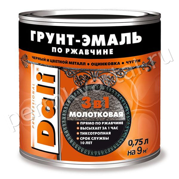 Грунт-эмаль по ржавчине молотковая 3в1 DALI Зеленый 0,75 л, (ДК)