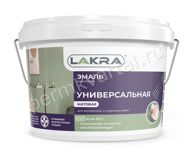Эмаль ЛАКРА акриловая универсальная белая матовая 2,5 кг, (ДК)