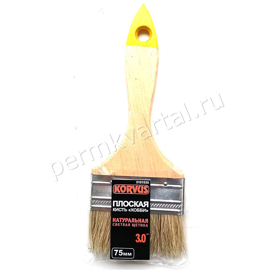 Кисть плоская KORVUS Хобби натуральная щетина 75 мм 101930, (ДК)