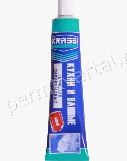 -----Герметик силиконовый KRASS для кухни и ванны белый, 80гр, (ДК)