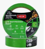 DECOR. Лента малярная для внутренних работ, зеленая 9ммх25м, (ДК)