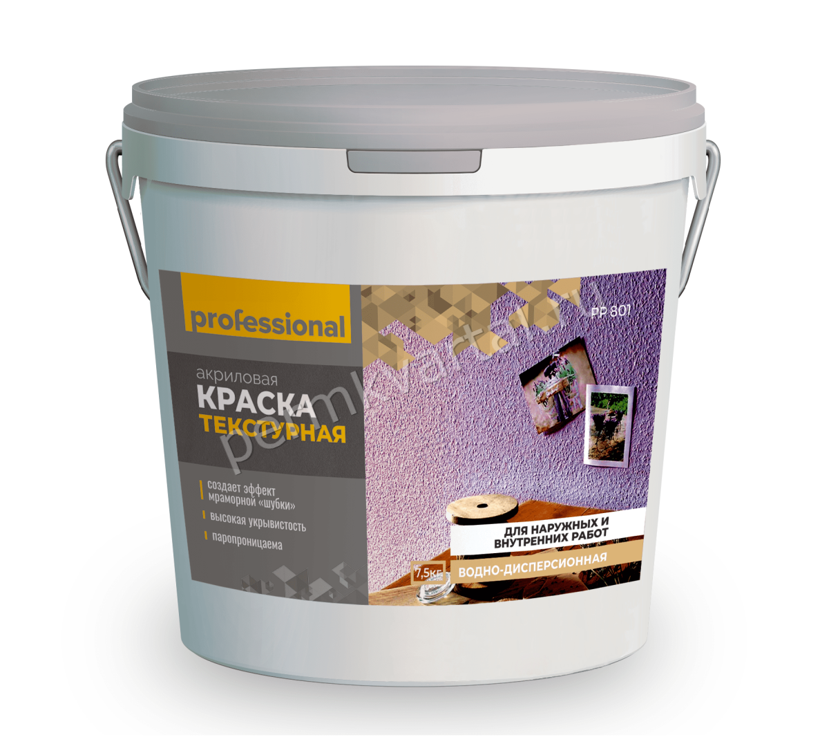 Краска текстурная для наружных и внутренних работ PROFESSIONAL PP801 белый 7,5 кг