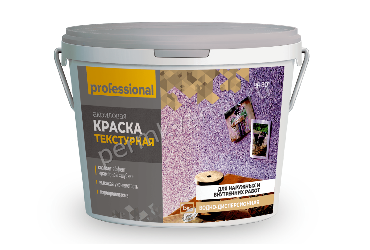 -----Краска текстурная для наружных и внутренних работ PROFESSIONAL PP801 белый 15 кг