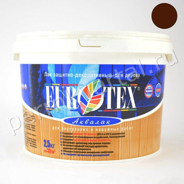 Акриловый лак на водной основе марки Евротекс применяется для декоративной отделки деревянных поверхностей под ценные породы древесины. Состав образует полуглянцевое эластичное покрытие, которое не только облагораживает внешний вид материала, но и защищает его от атмосферных воздействий, УФ-излучения и биологических поражений.